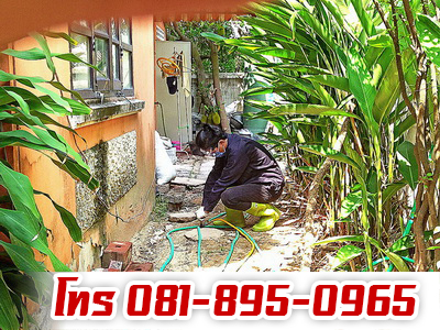 อัดน้ำยาเข้าเส้นท่อใต้อาคารเพื่อป้องกัน/กำจัดปลวกที่อาศัยอยู่ใต้อาคาร